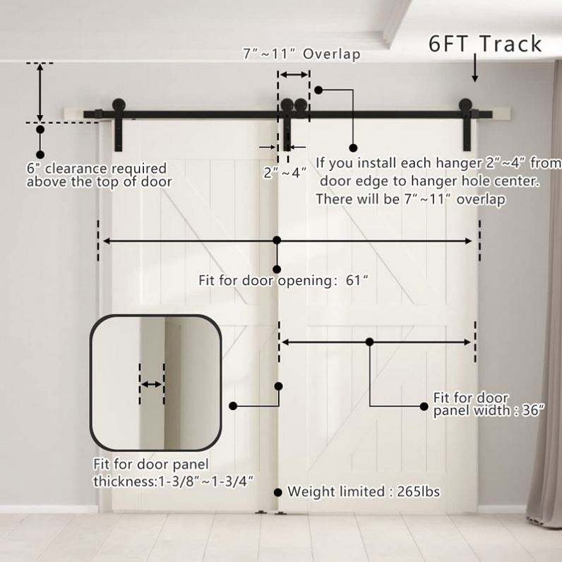 Capacité de poids:Portes de grange rustiques avec quincaillerie, capacité 120 kg / 250 lbs