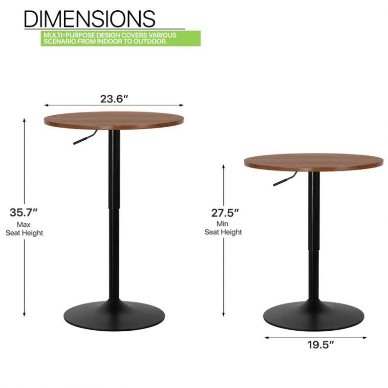 WEKIS Base de table basse ronde réglable en hauteur en bois pour salon, salle à manger, cuisine, maison, patio, noire