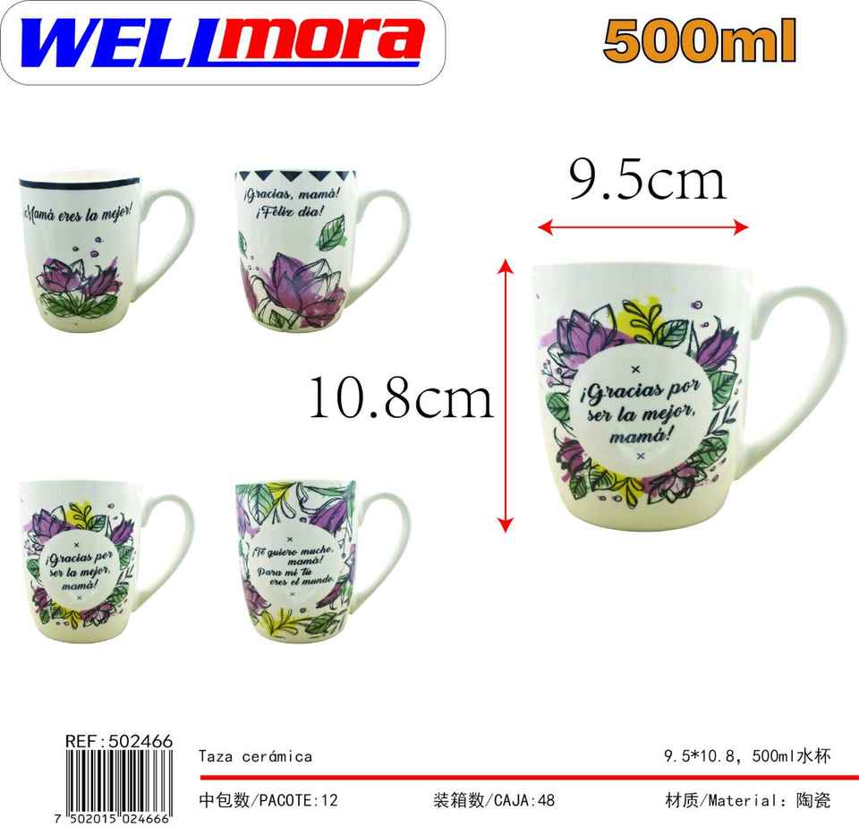 Mug en céramique WELImora avec motif floral, impression sérigraphique, pour boire, idéal comme cadeau