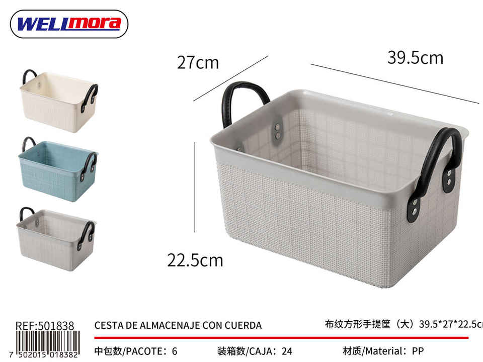 Panier de rangement WELImora rectangulaire avec poignée en corde, matériau PP, style moderne pour l'organisation du rangement à la maison