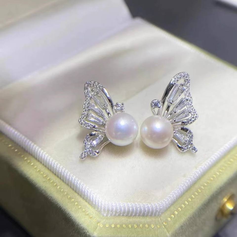 WENCHI 10735 22349DIY S925 Silver Ear Nails with Round Beads 6-7mm Empty Tray Butterfly Accessories for Pearl Jewelry