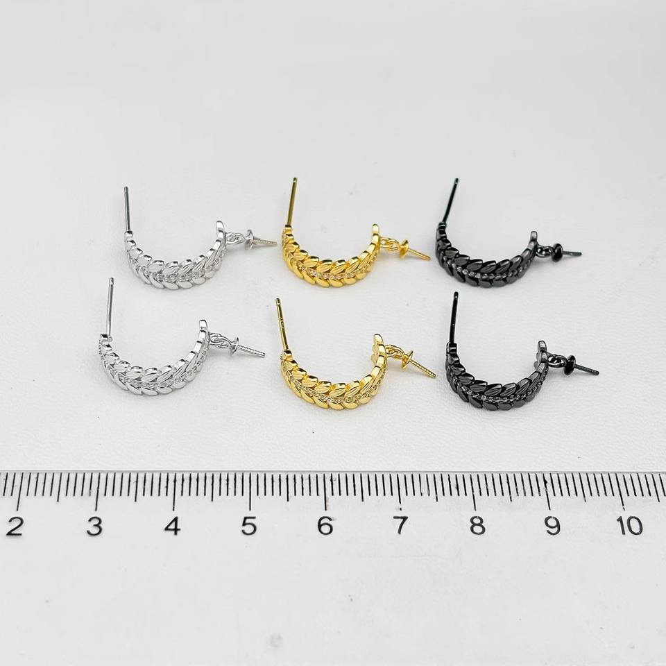 WENCHI 22379DIY Pearl Accessories S925 Silver Ear Nails Empty Bracket Bow Fashion Dangle Earrings Model 10758 with 6-8mm Beads