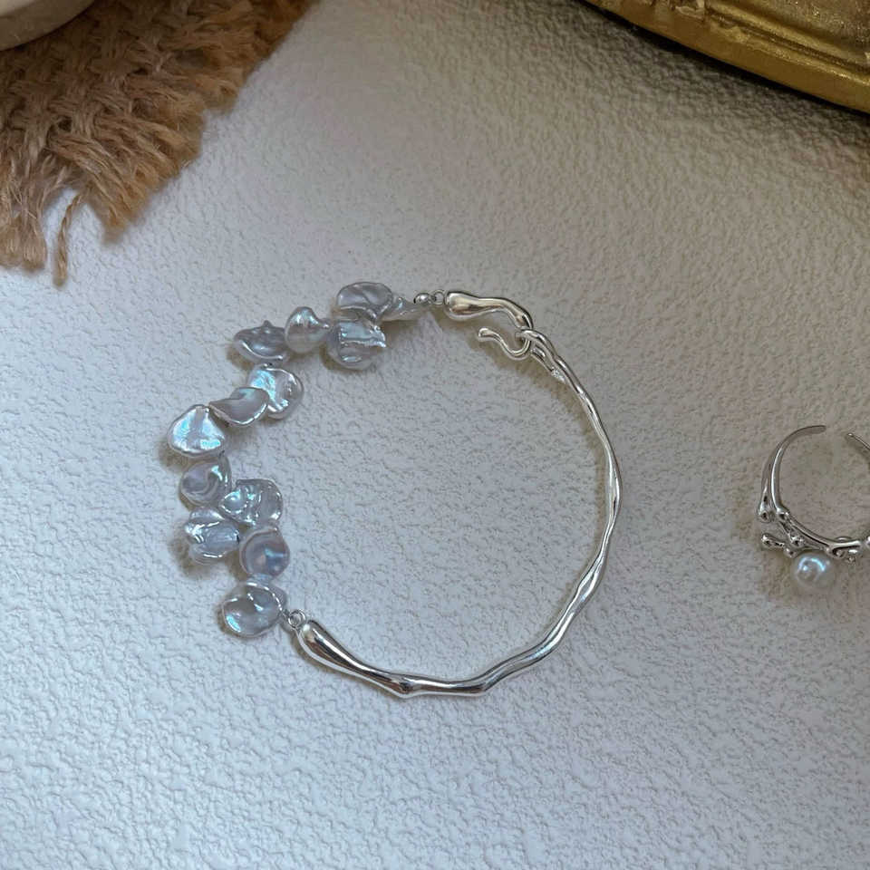SL36-9 Natural Petal Pearl Half Bracelet/5-7mmcolor