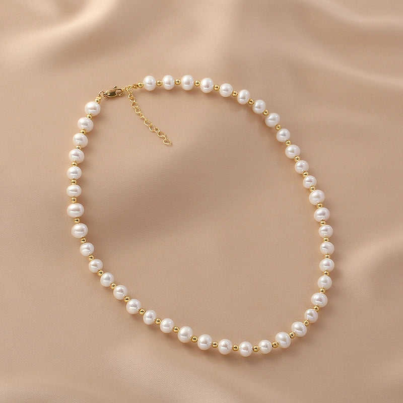WENCHI Fashionable Women's Natural Freshwater Pearl Necklace Light Luxury Beaded Collarbone Chain Original High Sense Design