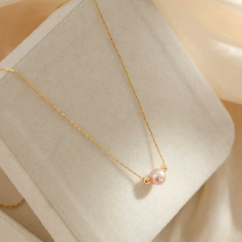 WENCHI Minimalist Feminine Temperament Necklace Purple Natural Freshwater Pearl Collarbone Chain with Single Pendant 40+4cm