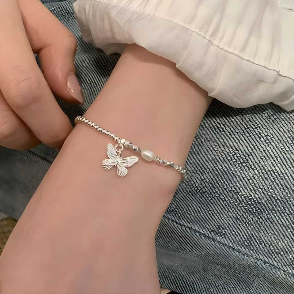 Natural Pearl Butterfly Crushed Silver Bracelet Plain Silver 32color