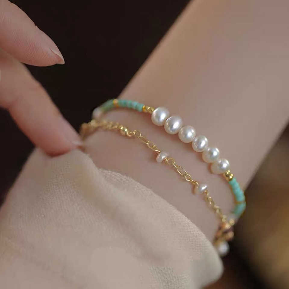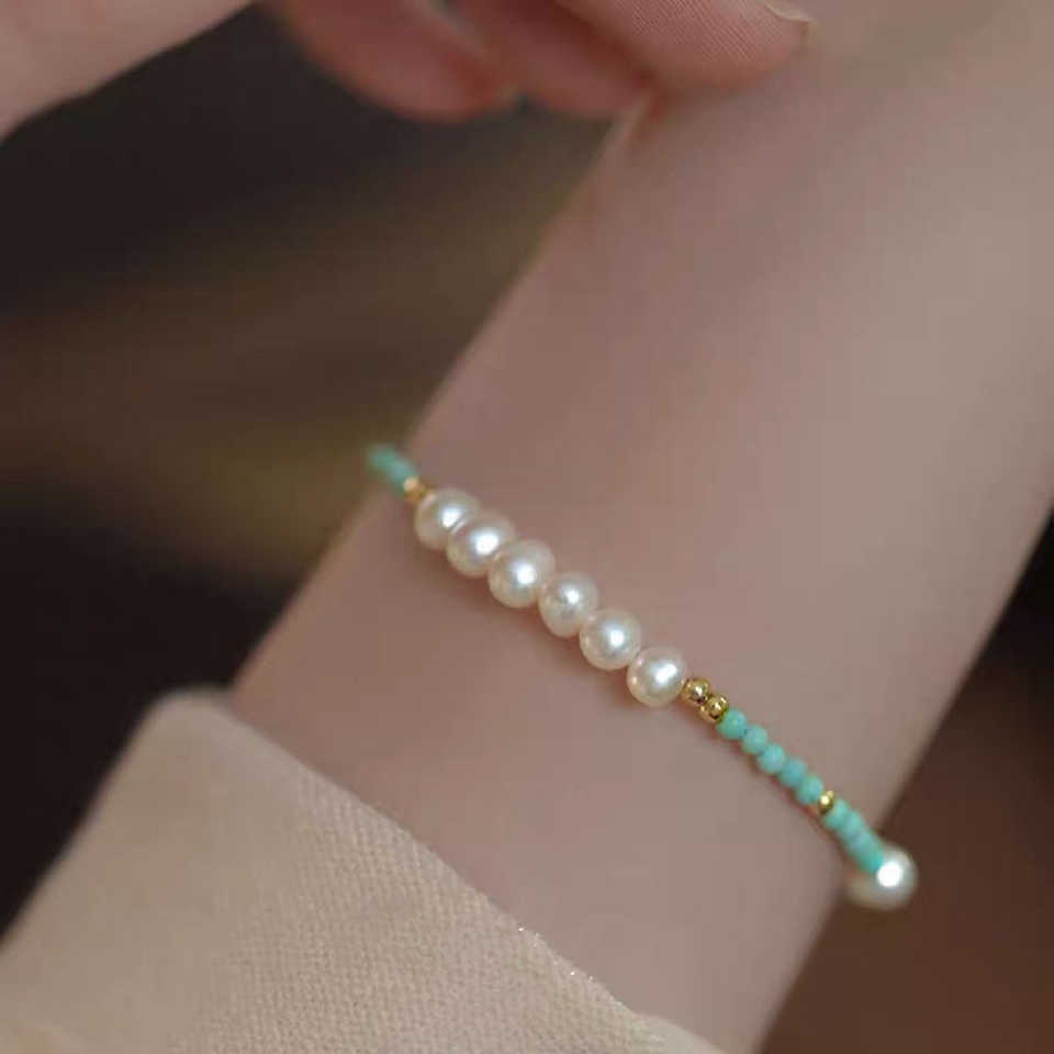 ZL14-2 natural freshwater pearl about 5mm/synthetic turquoisecolor