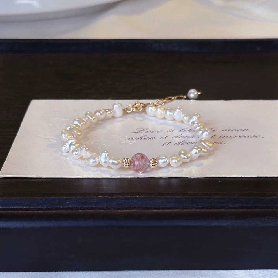 SL15-17 Strawberry Crystal Skirt Pearl Bracelet/Pearl 4-5mmcolor