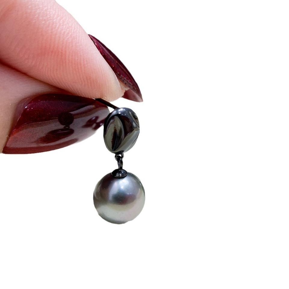 WENCHI S925 Silver DIY Pearl Accessories 9-15mm Round Beads 22065 Black & Silver Jewelry Earrings with Empty Stand