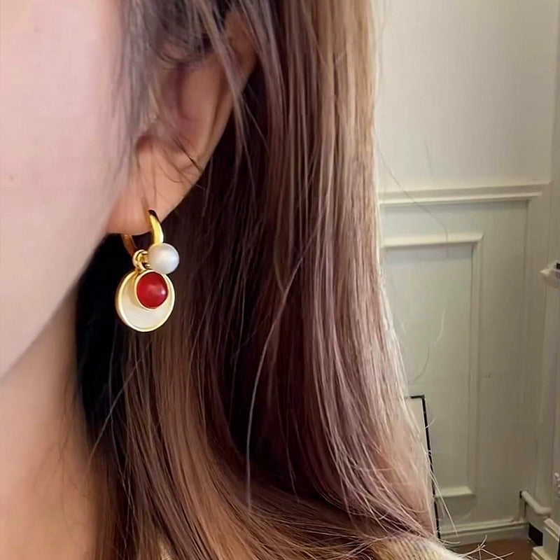 WENCHI Women's National Style 1615 Natural Pearl Agate Earrings Fashion Drop Studs
