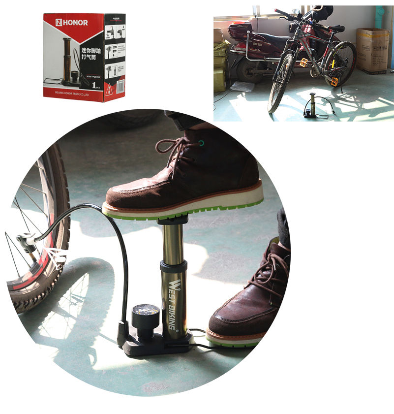 Pompe à pied pour vélo WEST BIKING 160 PSI, pompe à pied activée par le pied avec manomètre, pompe à vélo, mini pompe à vélo portable, gonfleur de pneus