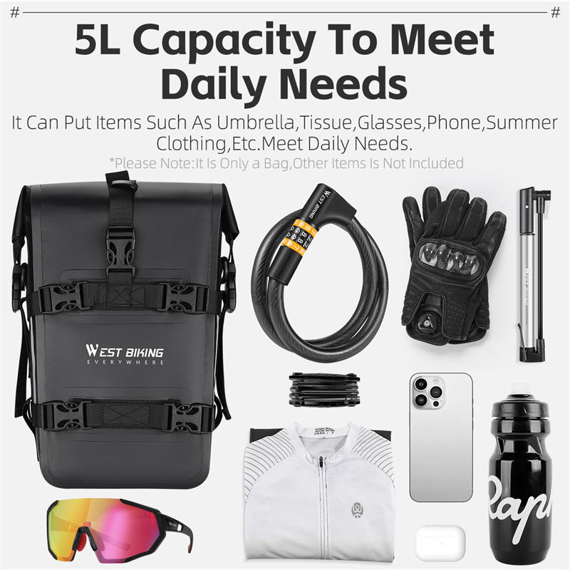 WEST BIKING 500D PVC Sac de selle de vélo entièrement étanche Sac latéral extensible pour vélo avec coussin antidérapant Accessoires de vélo