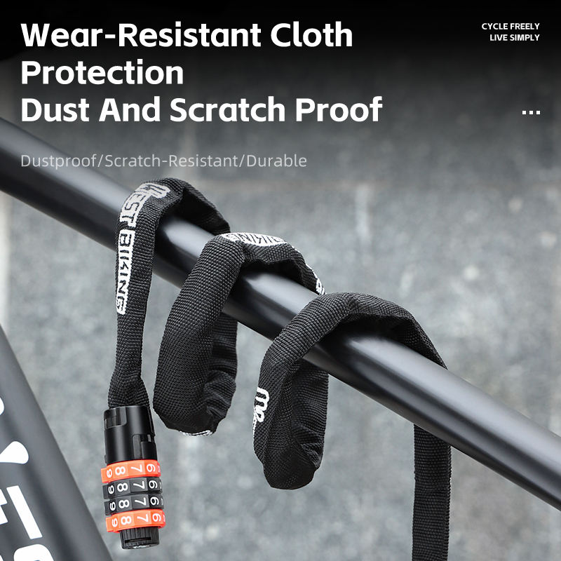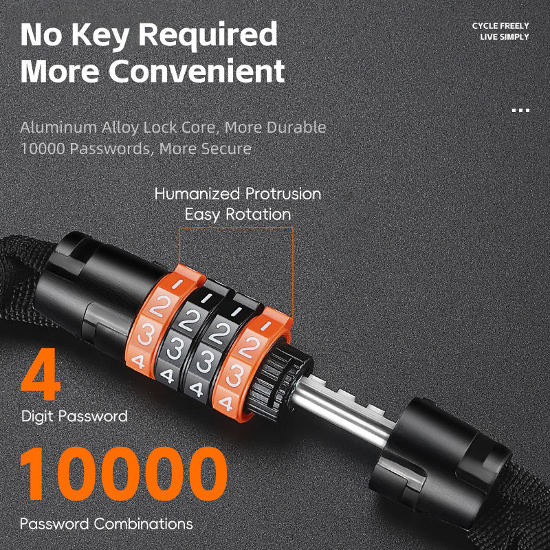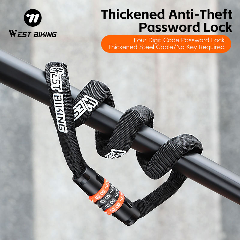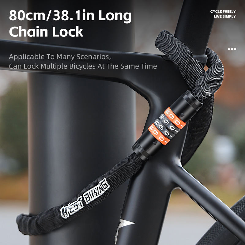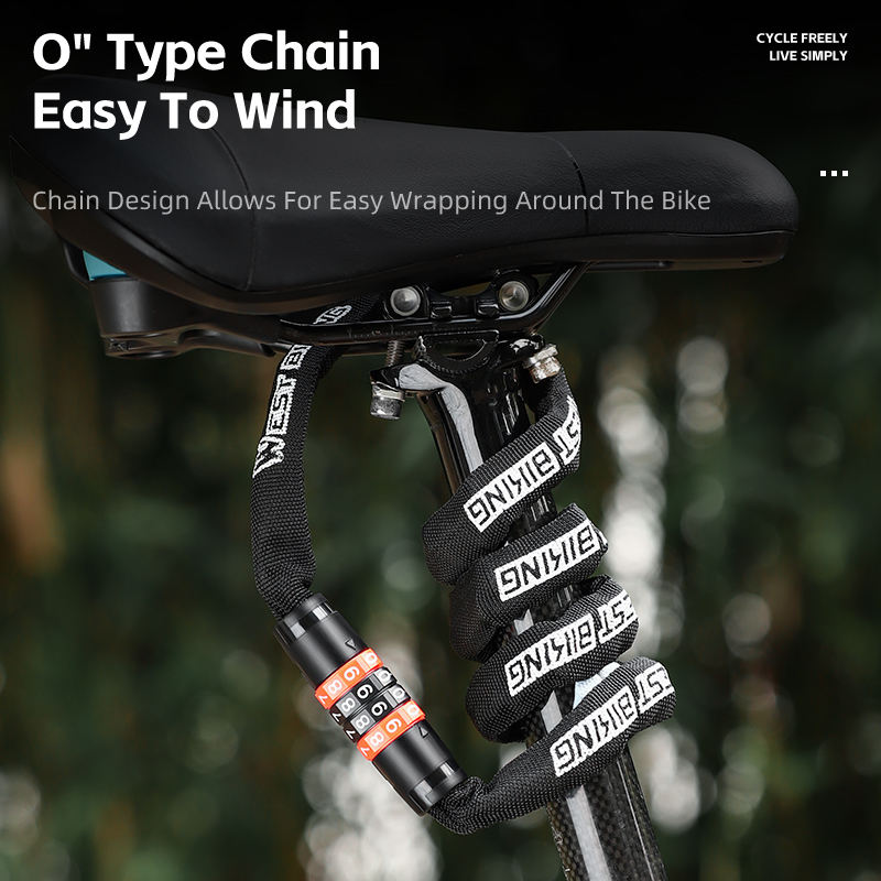 WEST BIKING Cylindre de serrure de chaîne de vélo antivol multicolore 6MM d'épaisseur Serrure de chaîne de vélo Sécurité vélo Mot de passe Serrure de chaîne