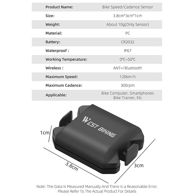 Capteur de cadence de vélo WEST BIKING, étanche, longue durée de vie de la batterie, exercice de cyclisme en plein air, capteur de vitesse et de cadence avec GPS