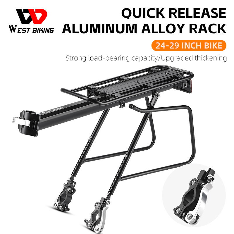 Porte-bagages arrière pour vélo WEST BIKING, capacité de charge de 100 kg, en alliage d'aluminium, porte-bagages pour VTT, siège arrière, coffre, libération rapide, porte-bagages pour sacoches