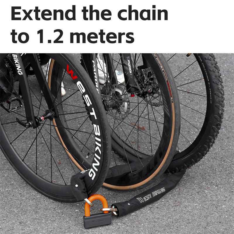 WEST BIKING OEM/ODM Nouvelle technologie de verrouillage de chaîne de fer de porte de vélo de montagne Ebike antivol noir