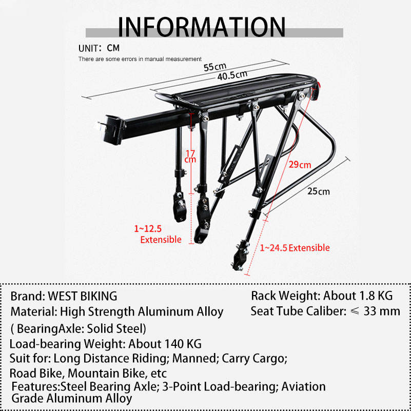 Porte-bagages arrière pour vélo en acier à dégagement rapide WEST BIKING avec porte-selle arrière réglable en aluminium et réflecteurs