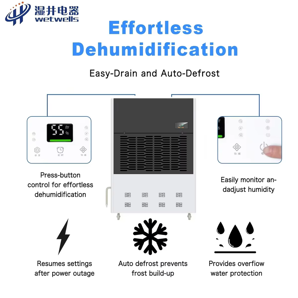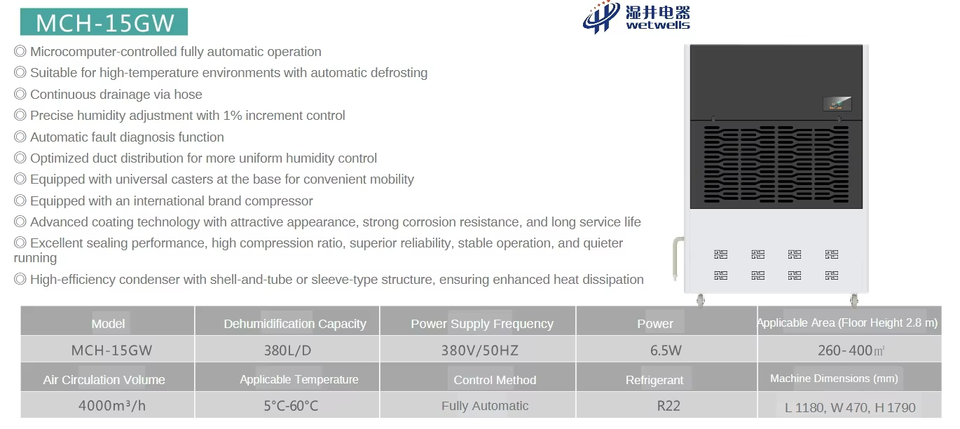 WETWELLS New Brand Compressor High Temperature Dehumidifier Anti-Corrosion Coating 380L/D Capacity Stable Performance OEM