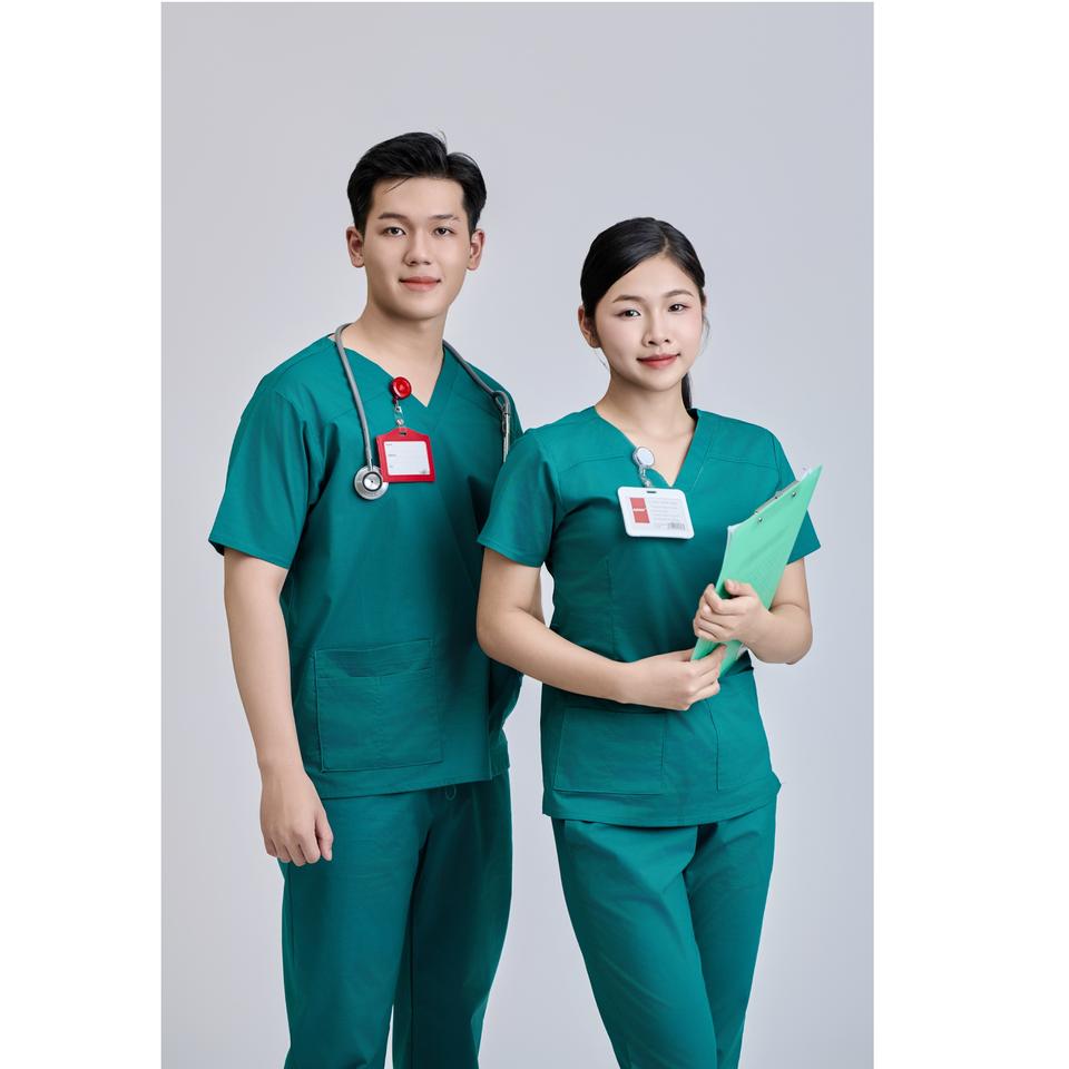 Ensemble de blouses médicales unisexes WFX-CVC, fabrication vietnamienne, 52% coton, 45% polyester, 3% élasthanne, FMF, détection des aiguilles dans les tissus