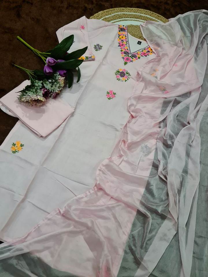Salwar Kameez moderne blanc gaufré en viscose lourde Chandar avec broderie de sequins pour tenue de soirée