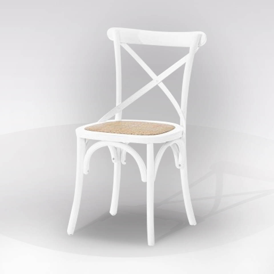 Chaise laquée blanche avec base en rotin