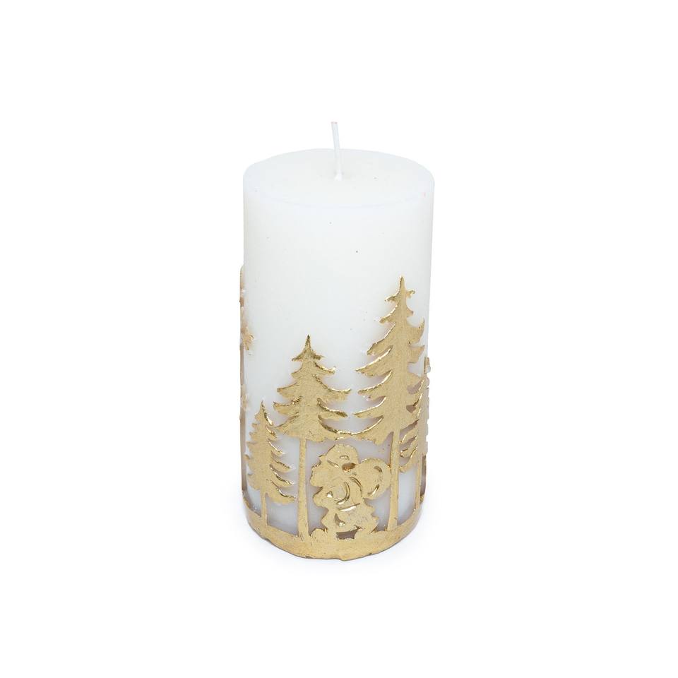 Bougie pilier blanche avec décoration dorée 334g diamètre 6,2 cm H 12 cm