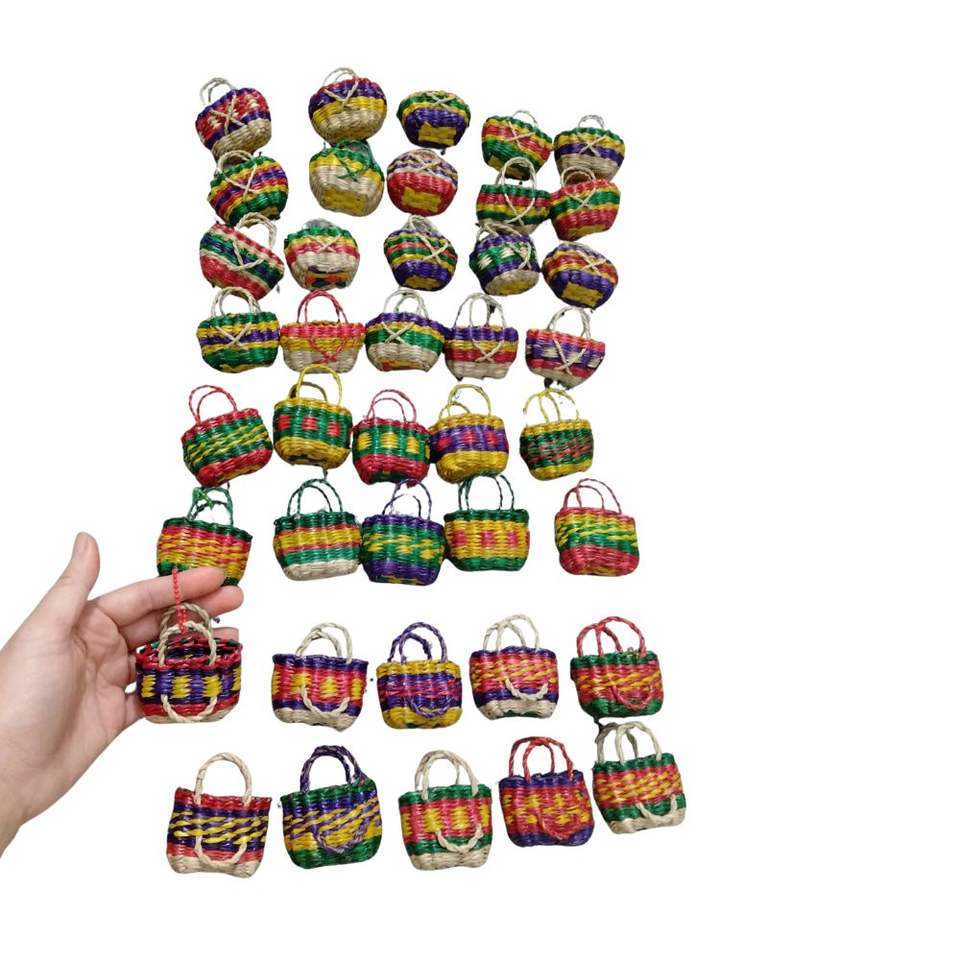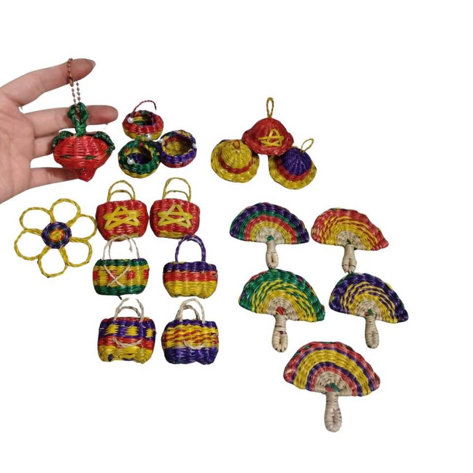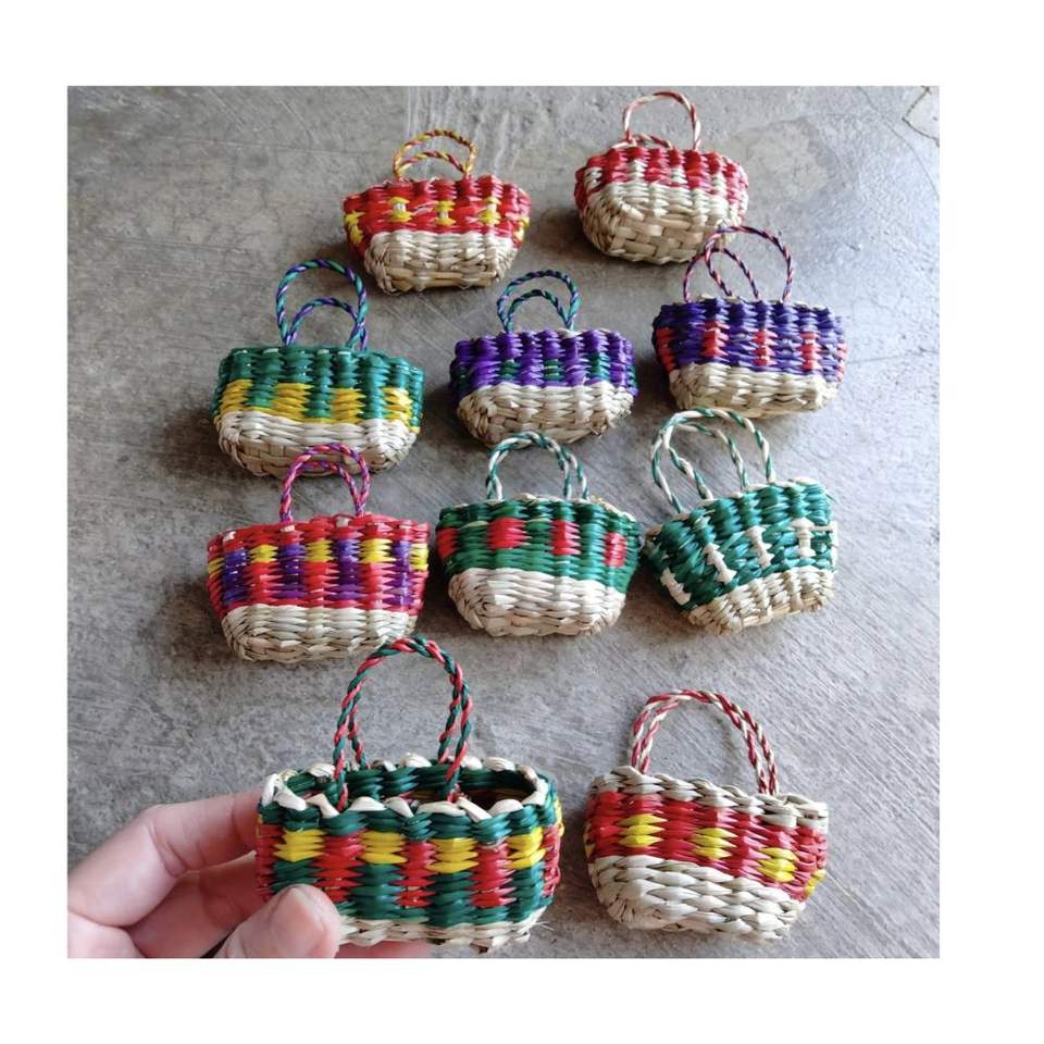 Breloque de sac ou de voiture miniature en rotin vietnamien traditionnel, tressée à la main, motif arc-en-ciel, design nordique, pour cadeau d'affaires, vente en gros