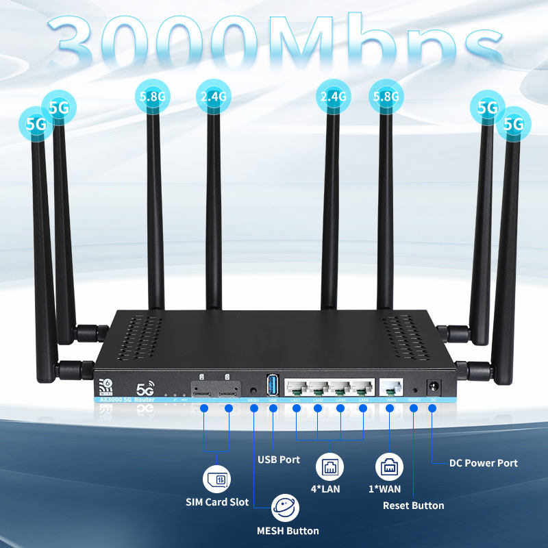 Routeur OpenWrt double bande WIFI 6 à usage domestique prenant en charge le mode clignotant à une touche avec ports 1WAN + 4LAN Routeur 4G personnalisé avec carte SIM
