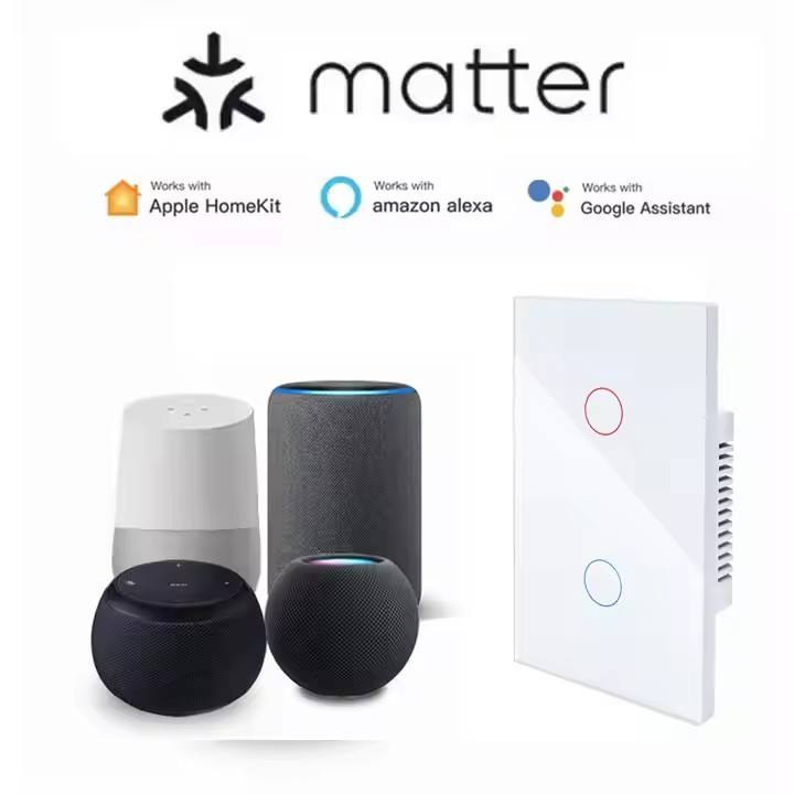 Interrupteur intelligent WIFI Matter Homekit US AU 10A ABS NFC à commande tactile 1 2 3 gangs, commande vocale à distance Alexa Google, sans neutre