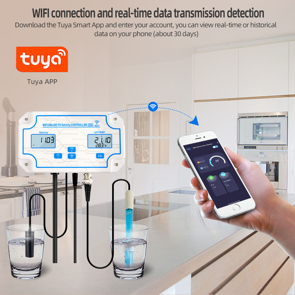 Testeur de qualité de l'eau, WIFI, numérique 3 en 1, température, PH, salinité