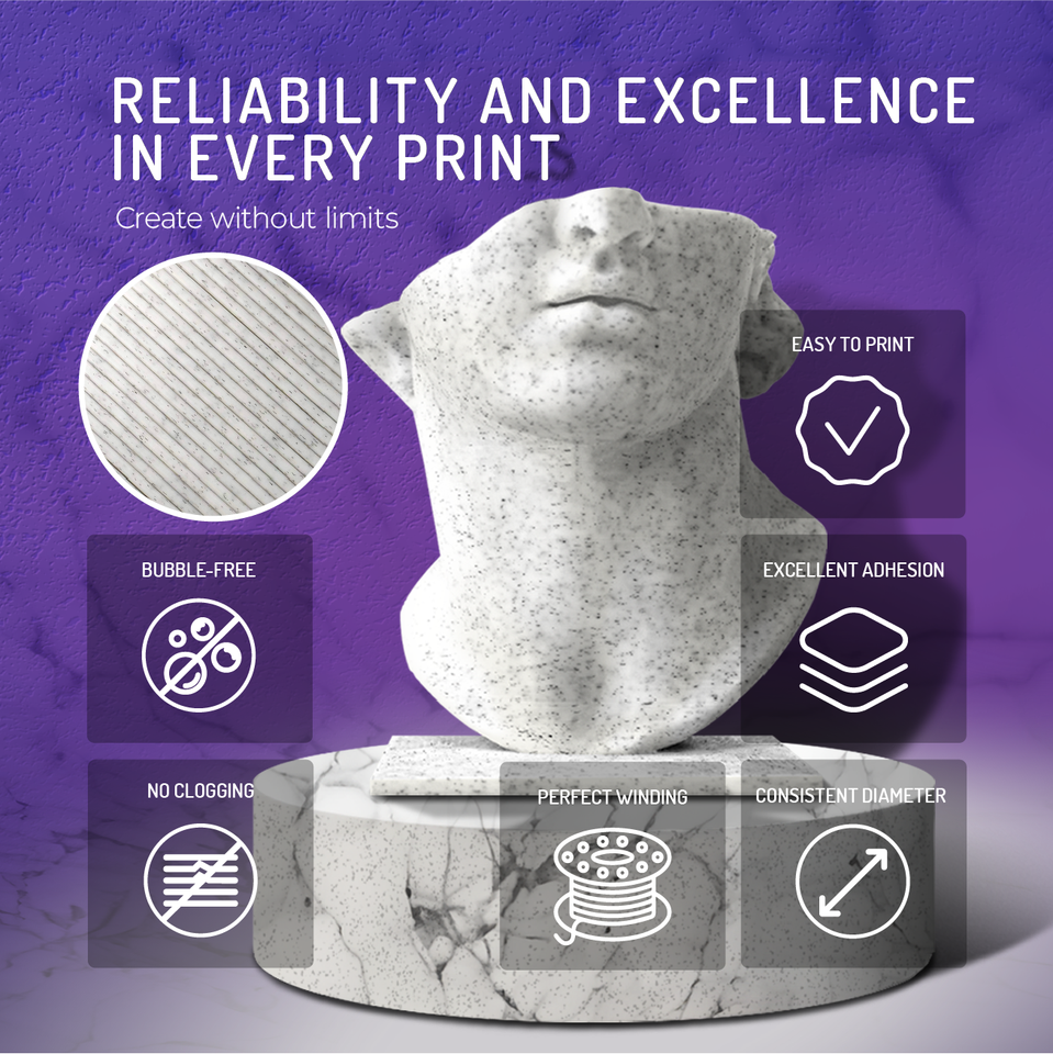 Filament d'imprimante 3D WINKLE Marble PLA HD texturé 1,75 mm 1 kg, qualité européenne, ES biodégradable, impression facile, haute précision 190-230