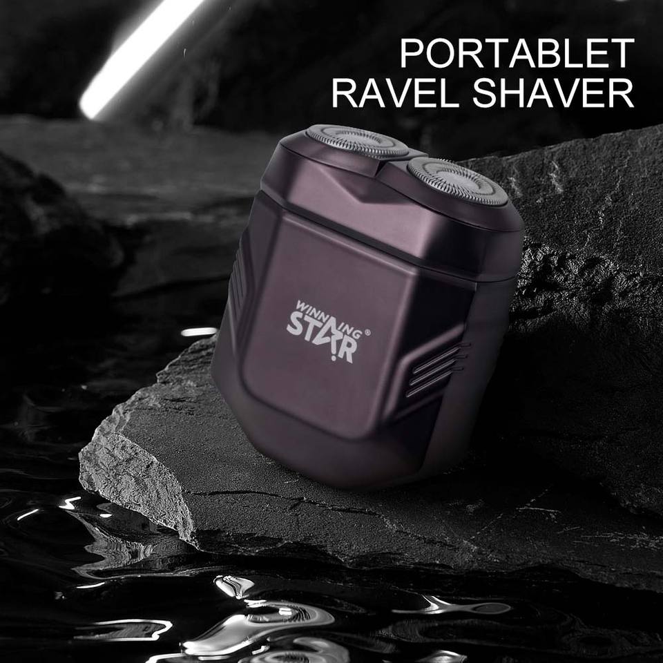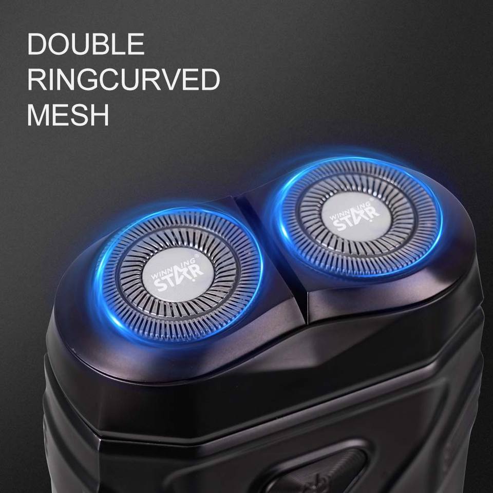 WINNING STAR ST-5844 Tondeuse à barbe électrique pour homme, double lame magnétique, utilisation en voiture, rechargeable par USB