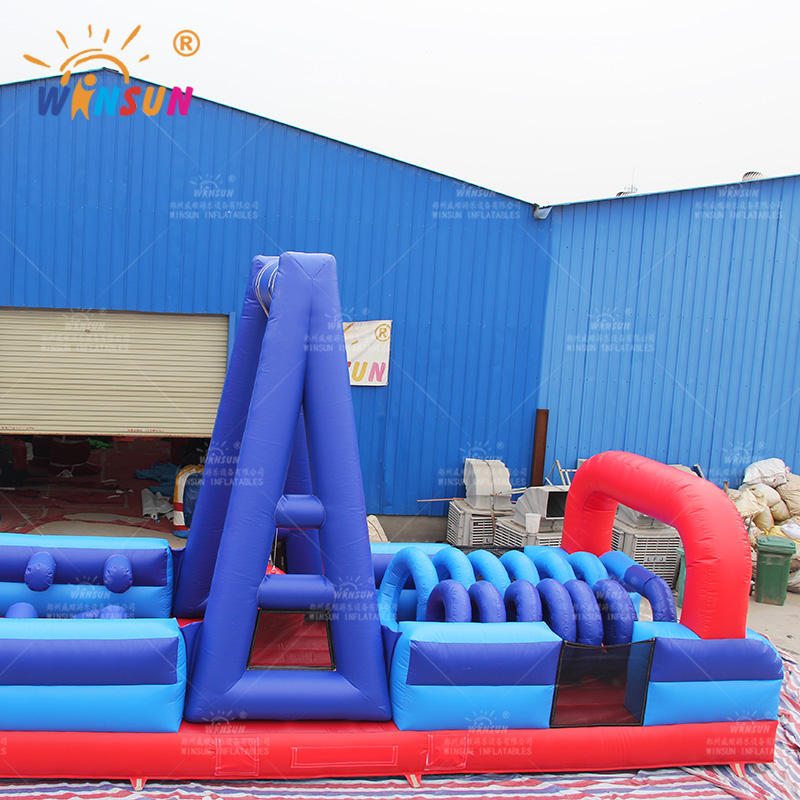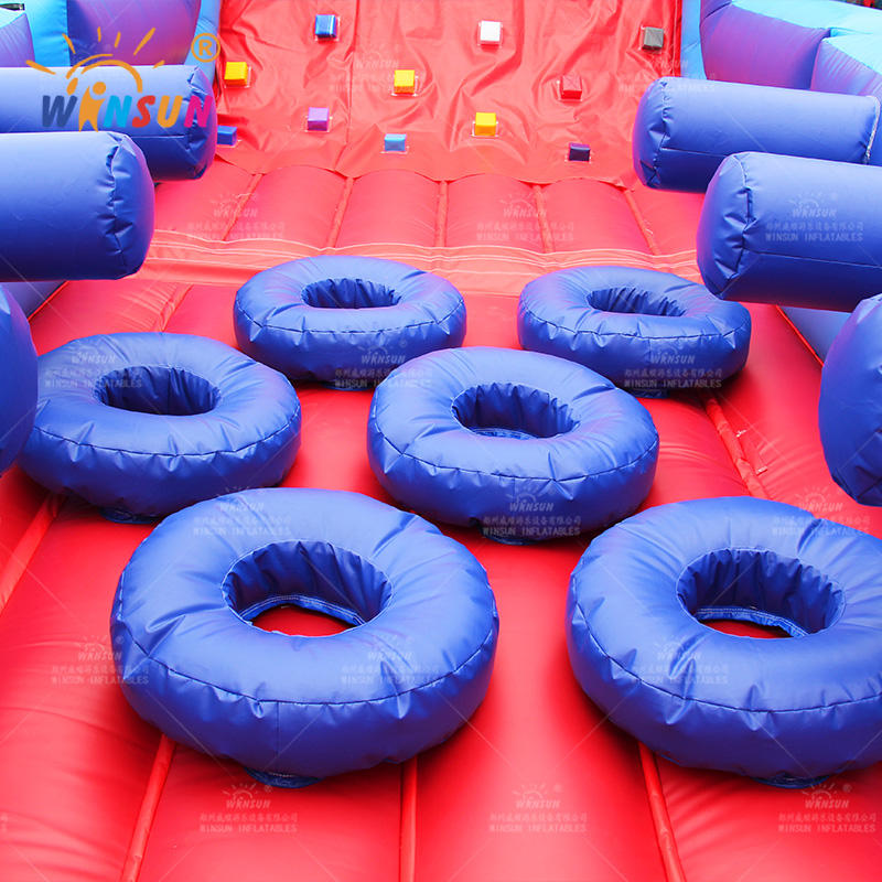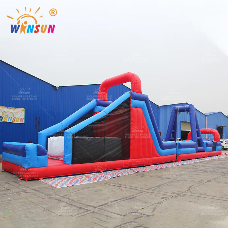 Parcours d'obstacles gonflable commercial WINSUN de 20 m, parcours d'obstacles extrême en PVC, jeu de parcours d'obstacles Wipeout avec souffleur, comprend des kits de réparation