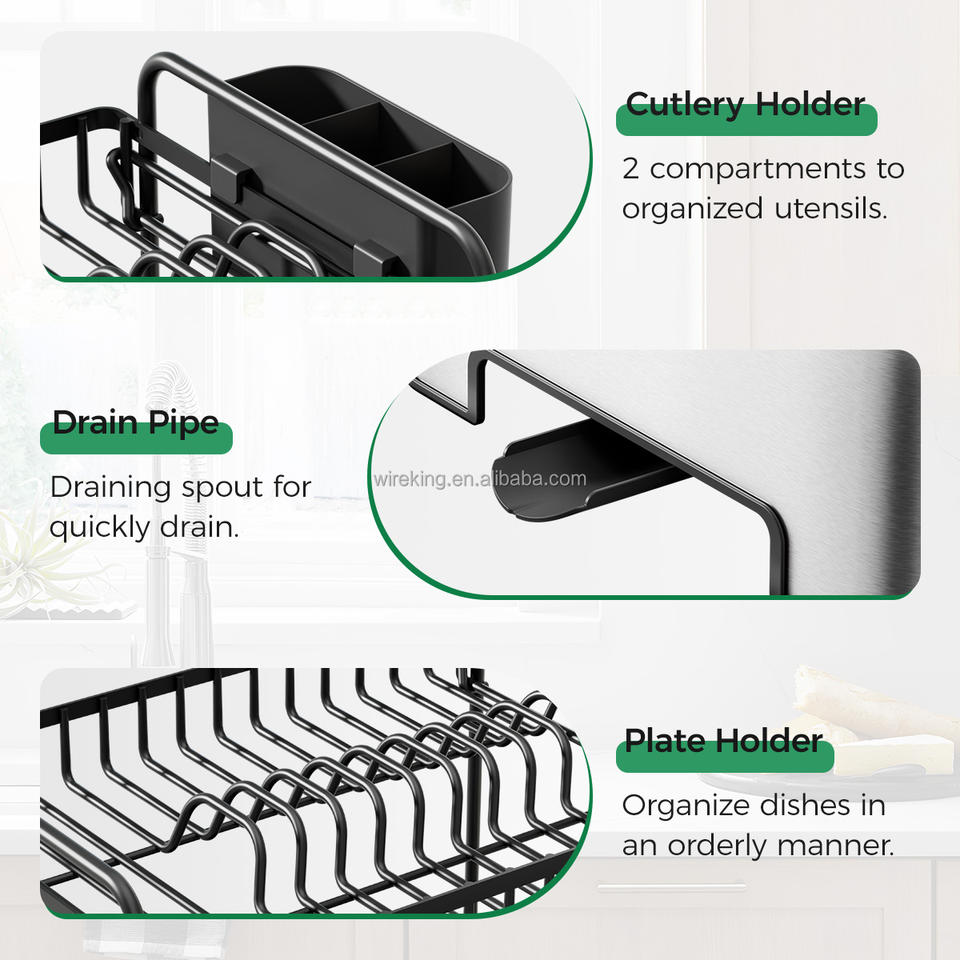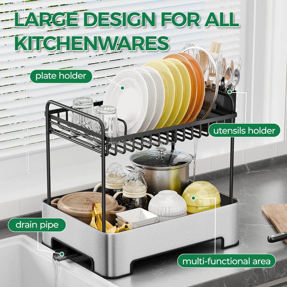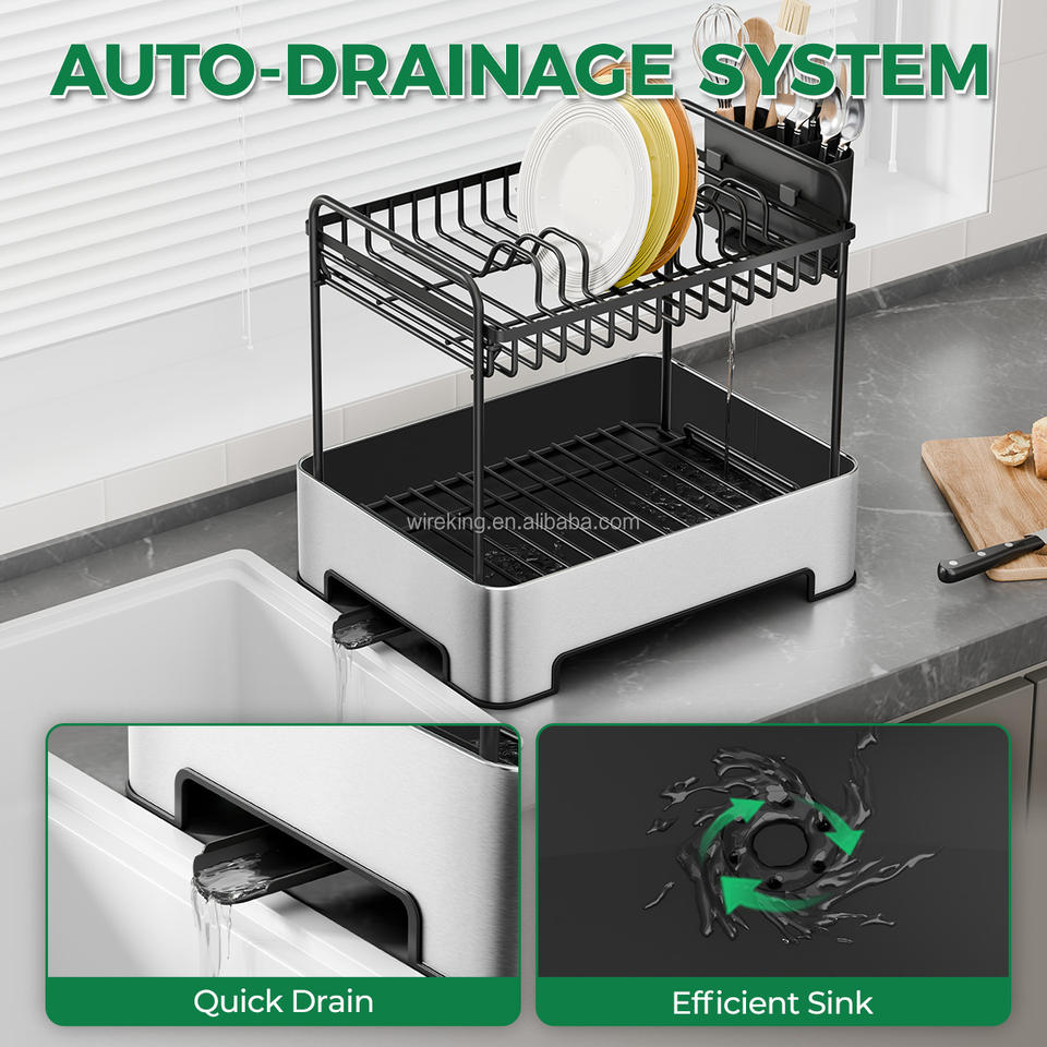 WIREKING Égouttoir à vaisselle à 2 niveaux en acier inoxydable, organisateur d'accessoires de cuisine, support pour ustensiles
