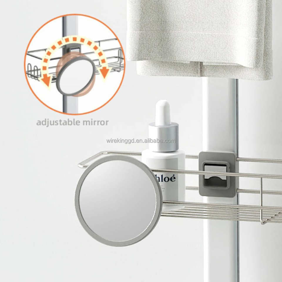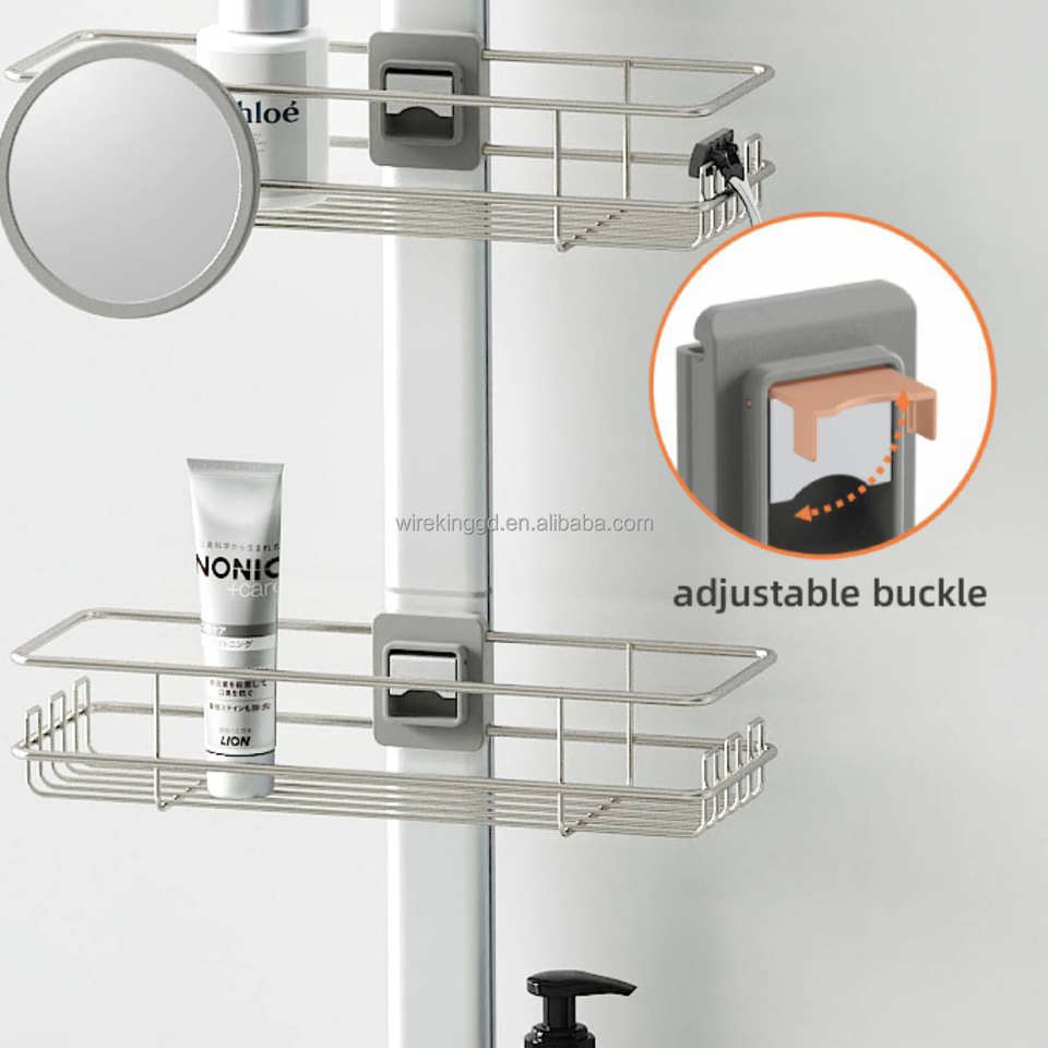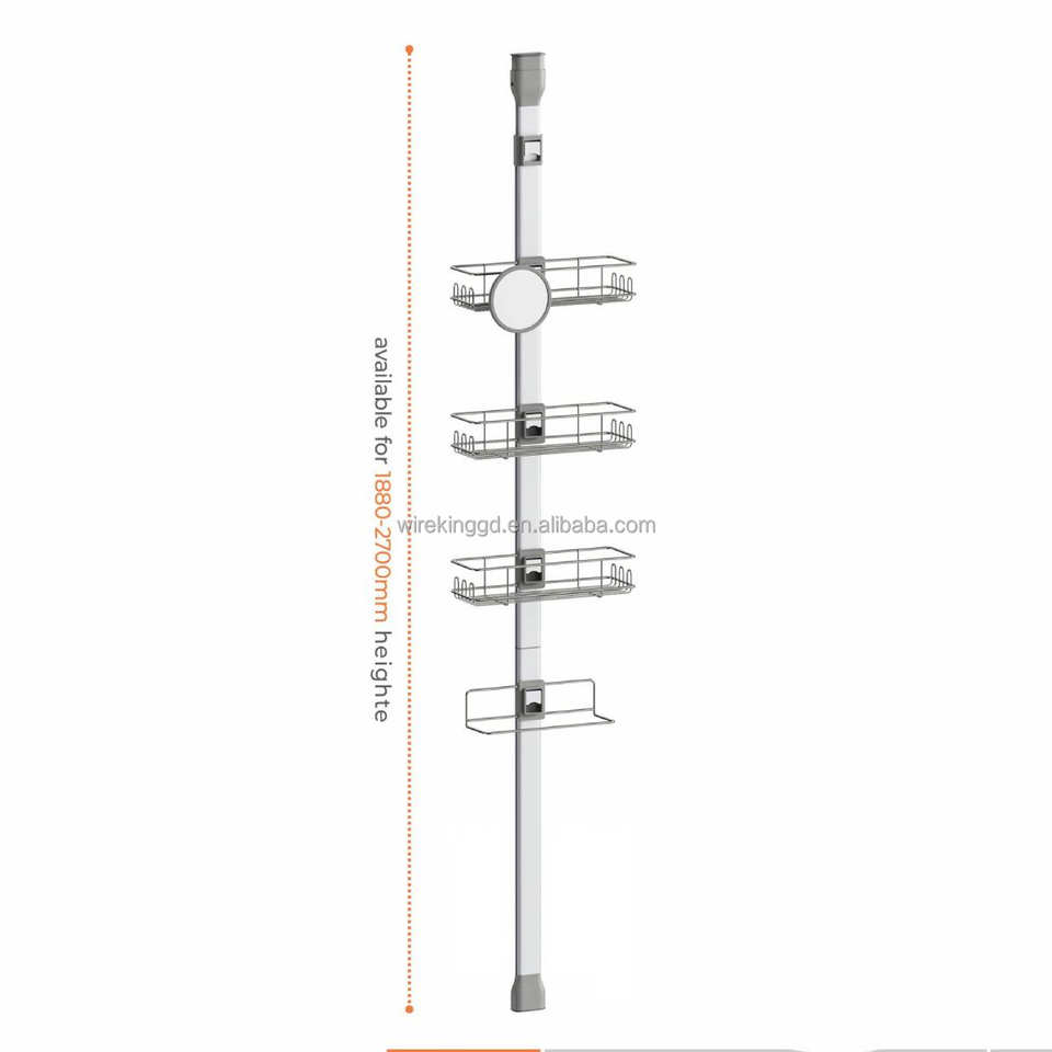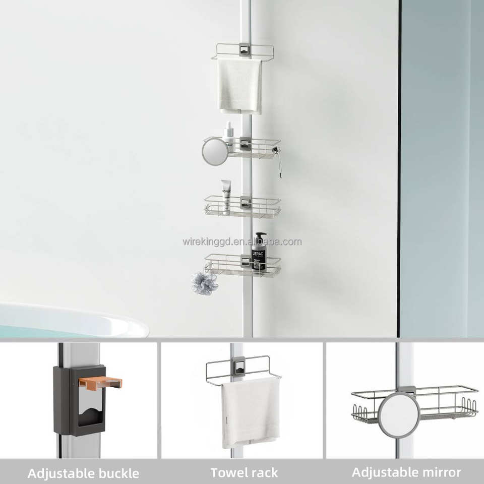 WIREKING Étagère de Douche d'Angle à Tension Réglable 74-106 Pouces, en Aluminium Inoxydable, 4 Niveaux, pour Rangement de Salle de Bain, Organisateur de Shampoing
