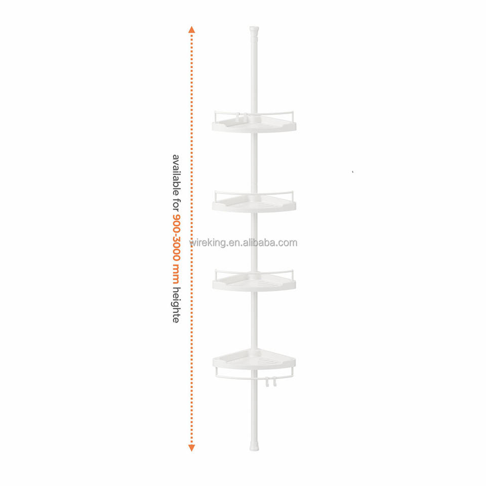 WIREKING Étagère d'angle de salle de bain, organisateur de douche à barre télescopique, 4 niveaux, étagères antirouille, support de rangement pour shampoing de baignoire