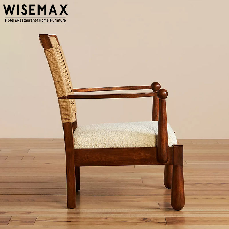 High-Quality Materials: Made from premium ash wood, rattan, and sponge, this armchair ensures durability and comfort. The use of lambswool and line rope adds to its luxurious feel.