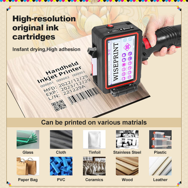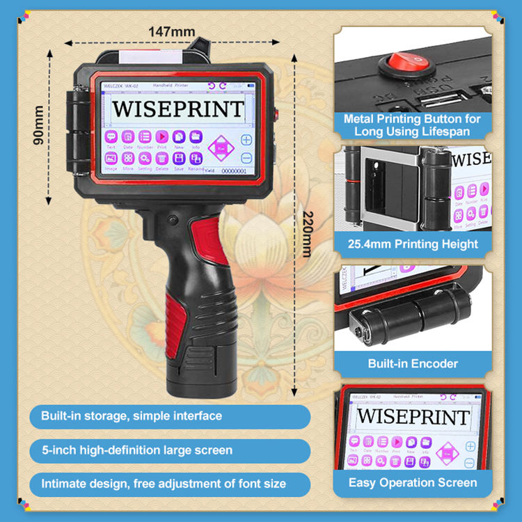 WISEPRINT TIJ Wholesale Price Push Button Expiry Date Code Portable HP-WP500 Handheld Battery Powered 600dpi Inkjet Printer