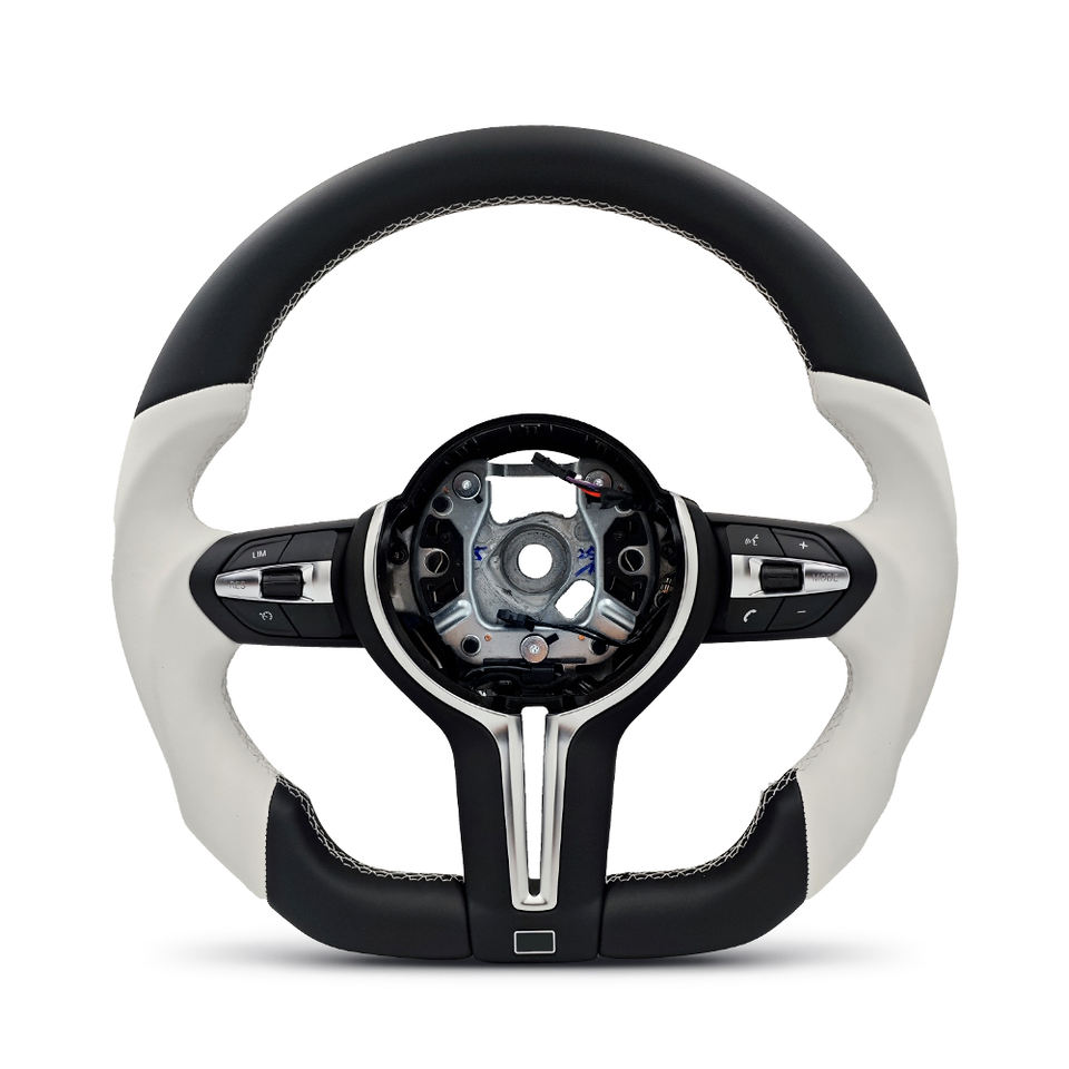 Volant sport M à fond plat en cuir blanc sans palettes de changement de vitesse pour BMW F10 F15 F16 F25 F26 F20 F22 F30 F33 F36