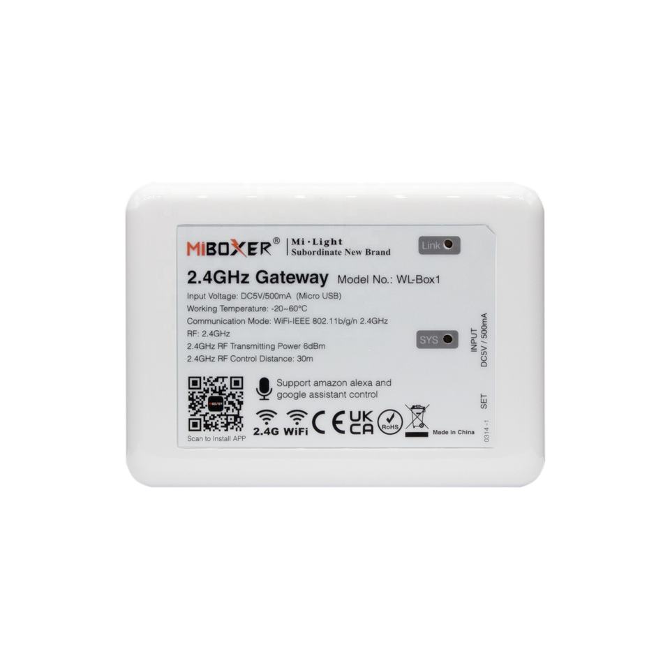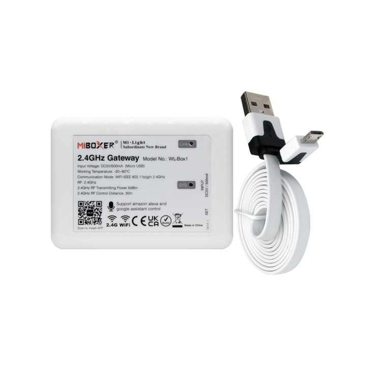 Passerelle sans fil RF 2,4G MiLight MiBoxer DC5V Micro USB WL-BOX1, peut contrôler de nombreuses bandes lumineuses LED via l'application Tuya Smart Life