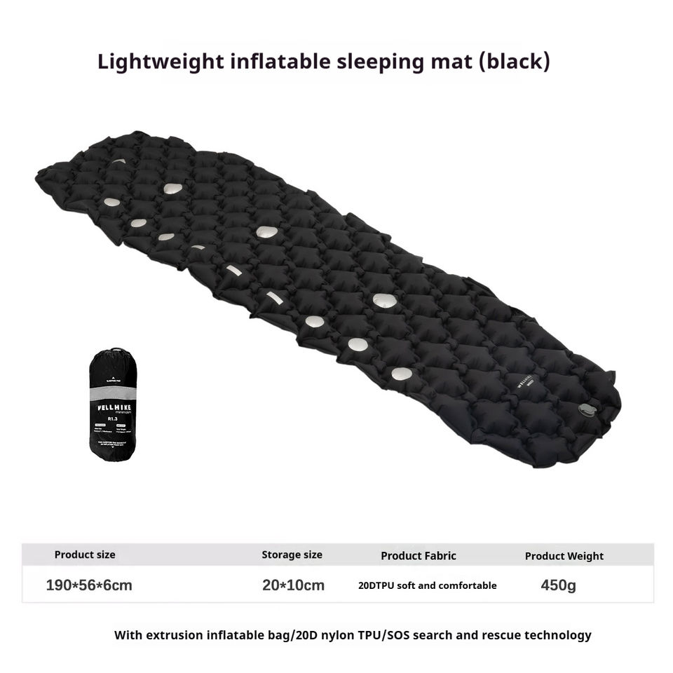 WLLHIKE Tapis de nuit gonflable pour randonnée en plein air et camping avec coussin de premiers soins réfléchissant en code Morse Tapis de sol portable et étanche à l'humidité