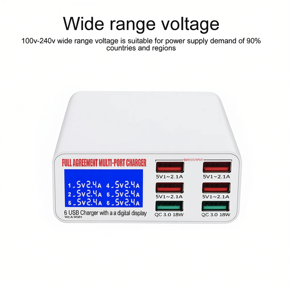 Chargeur USB 6 ports WLX-896 avec affichage numérique, multifonction, charge rapide pour appareils