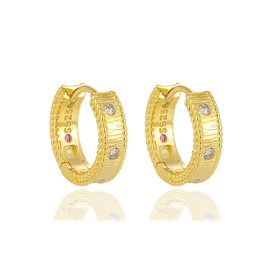 WMEA776 Boucles d'oreilles créoles CZ Rope Edge Chunky Hoops Boucles d'oreilles en argent sterling plaqué or avec zircon cubique.