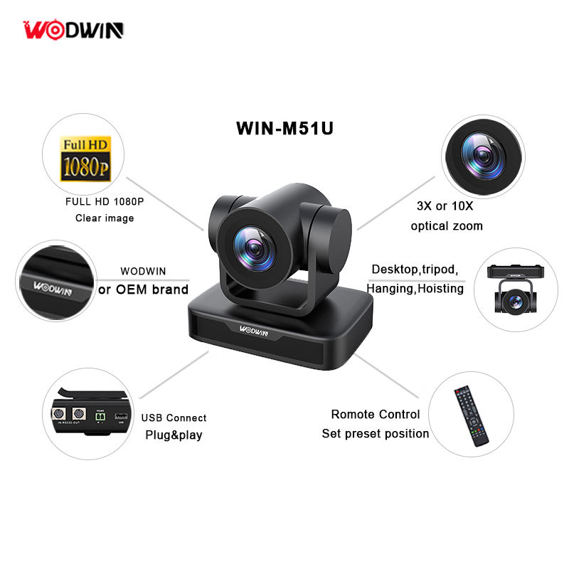 Système de caméra de conférence haute définition WODWIN, mise au point automatique, salle de conférence, caméra PTZ vidéo USB, microphone de conférence, haut-parleur
