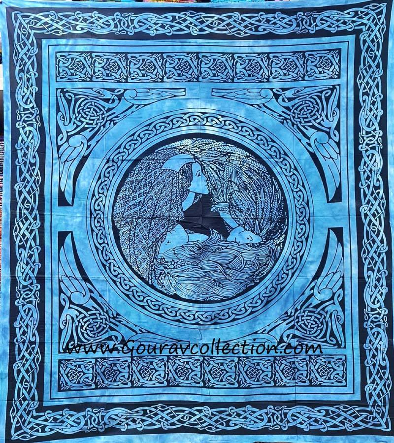 Tapisserie WOMB CELTIC BLUE PRINT, impression numérique, décoration murale, sur mesure, vente en gros, drap de lit en coton GC-TPDB-146