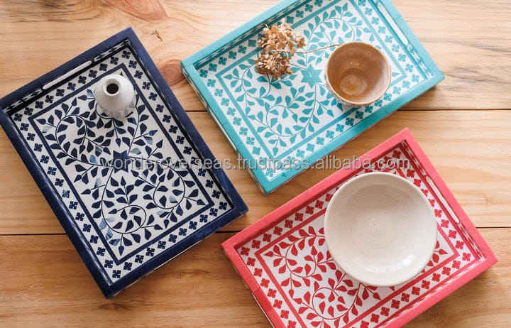 WONDER OVERSEAS Plateau de service en incrustation d'os de qualité supérieure Combinaison de bonnes couleurs