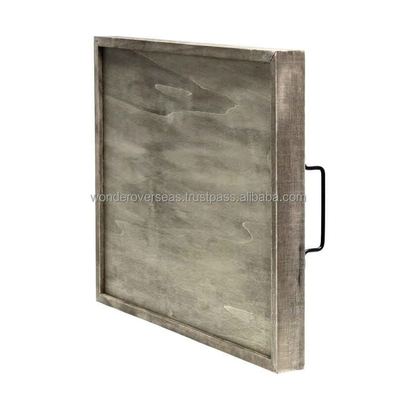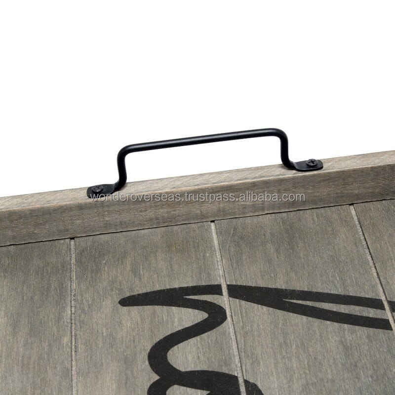 WONDER OVERSEAS Plateau de service rustique en bois brûlé avec poignées en métal Plateau rectangulaire