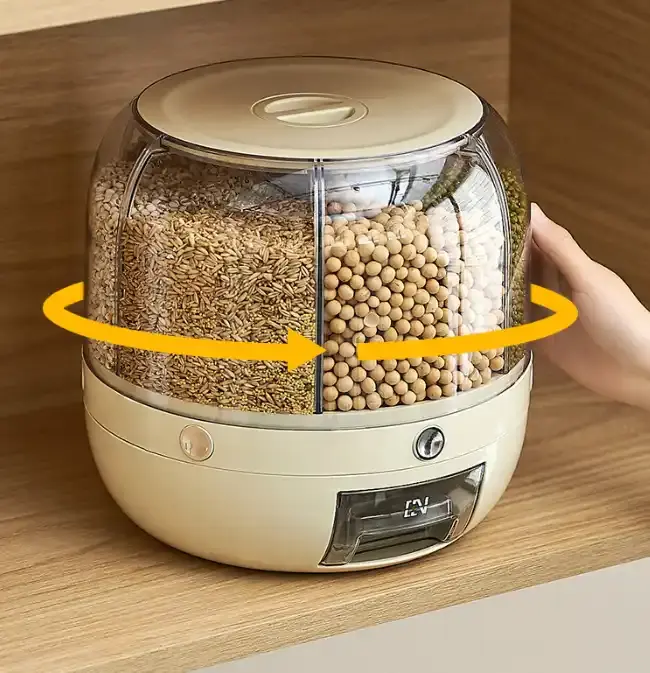 MAGNIFIQUE distributeur de riz de haute qualité distributeur de grains rotatif à 6 grilles étanche à l'humidité boîte de stockage de céréales conteneur de riz