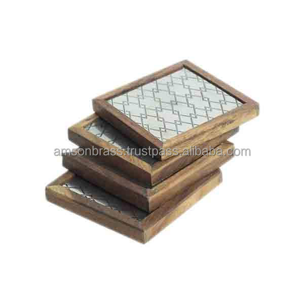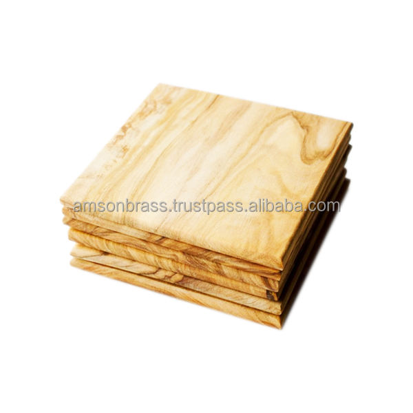 Sous-verres carrés en bois naturel, décoration de table, tapis et coussinets, finition brun naturel, ensemble de sous-verres pour servir du thé et du café