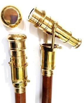 Canne de marche en bois avec poignée télescopique en laiton, pliable